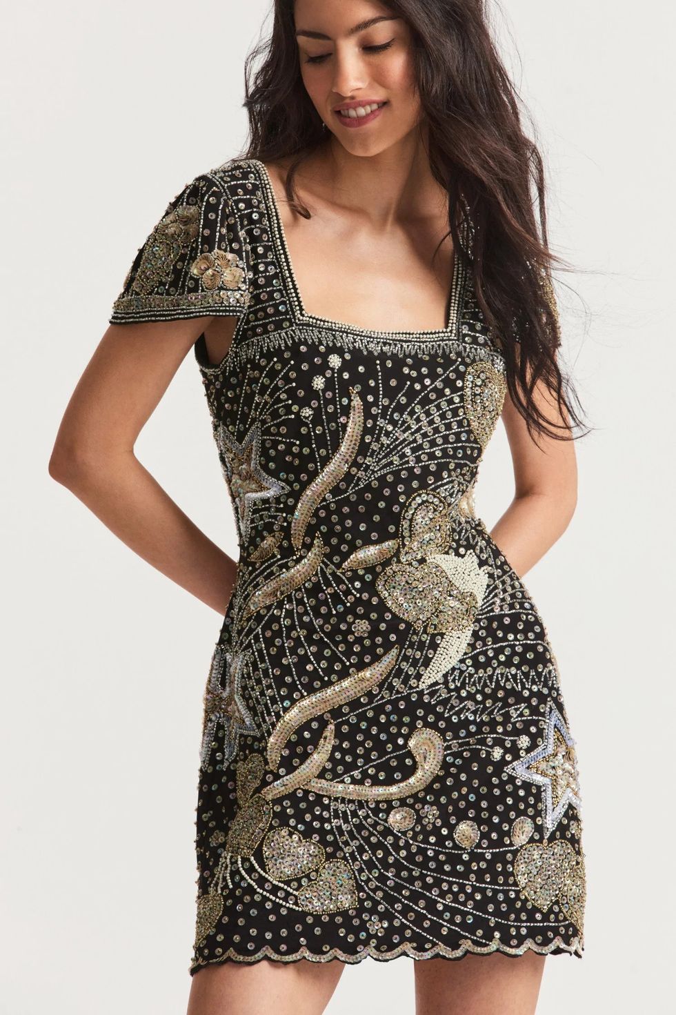 Style this Love Shack Fancy Davis Black Mini Dress up or down, depending on the mood. Sky high heels for VIP treatment or pair it with a more casual look with sneakers – either way, it's giving Reputation era vibes.