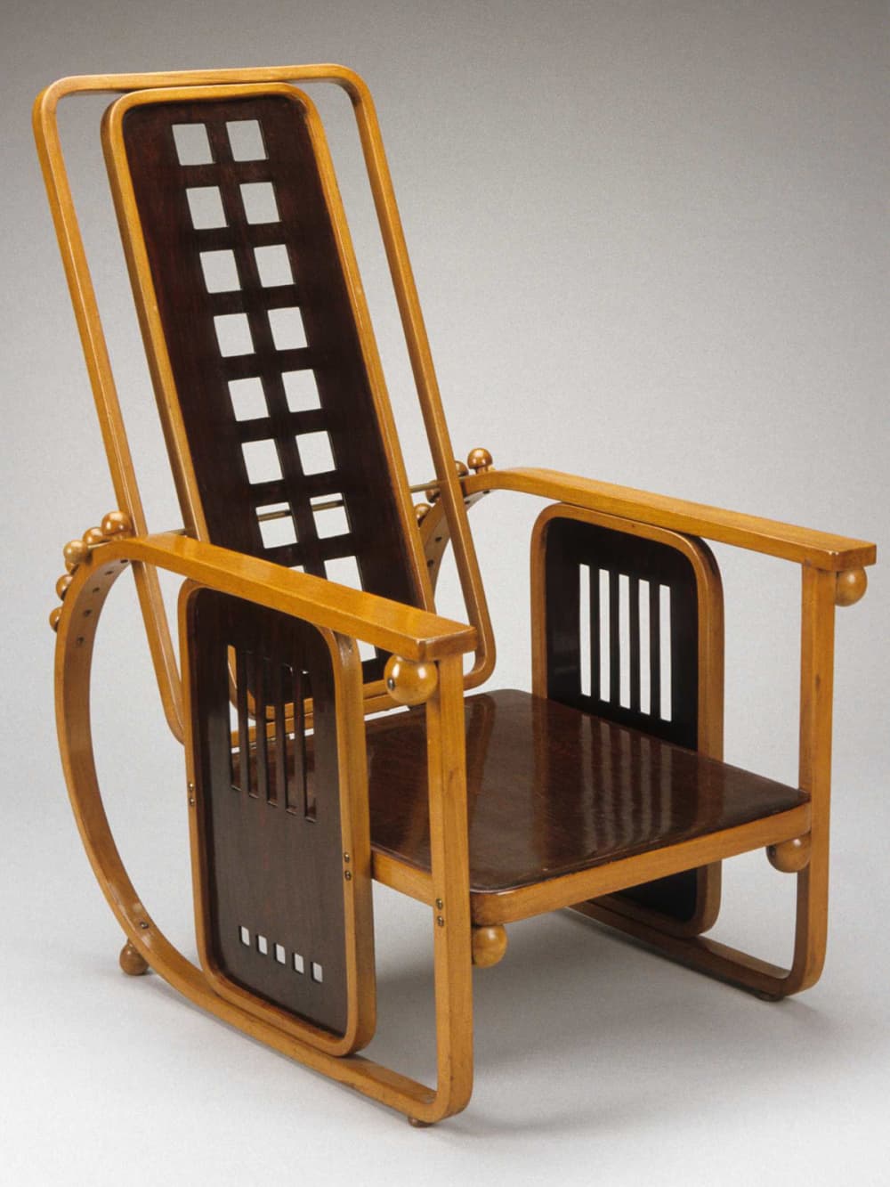 "It's a remarkably rare example because it's two-toned," Strauss says of the chair. "That is the kind of functionalist design that turn-of-the-century architects in Vienna were famous for: the double squares; the fact that all of the cutouts are geometric; the balls at the base that not function only as ornament, but as stabilization elements. Hoffmann is certainly one of the most important 20th-century architects and designers."
