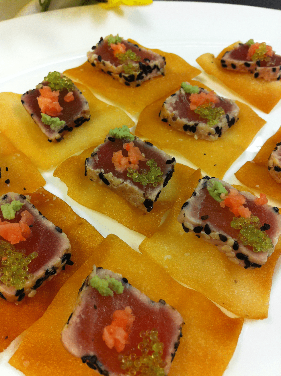 LM & MW: Novel serving dishes are huge – like soup shooters and miniature desserts. Think chilled cantaloupe soup garnished with crispy prosciutto and little chocolate pots de creme with mascarpone whipped cream on top. Totally adorable (and delicious!).
