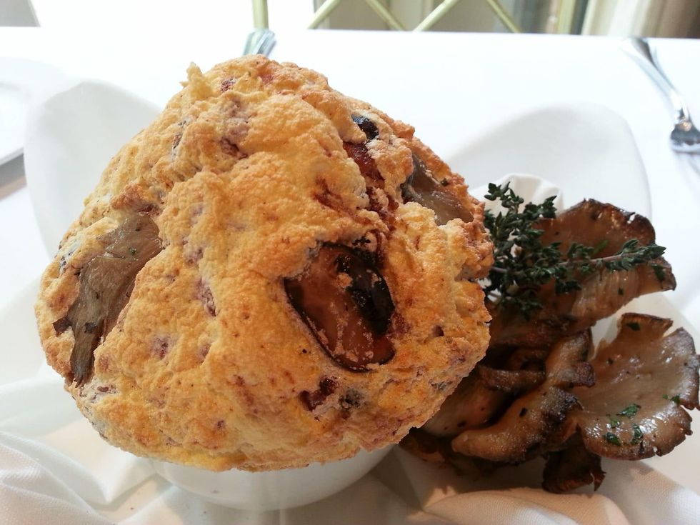 The mushroom Creole bread pudding soufflé includes blue-foot mushrooms whipped into Hatterman’s hen egg whites with 3300 Smith Street thyme and melted leeks
