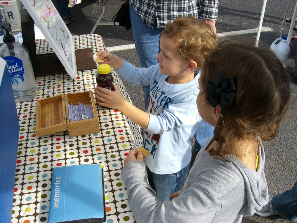 Children at the Houston Farmers Market enjoy healthful samples.