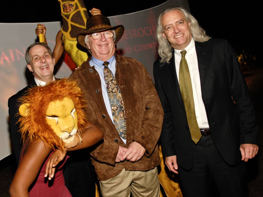 Guests were greeted by the sounds of the Koumankéle African drummers , a compelling beat that set the tone for the African-themed evening. In a nod to the vibrant sunset cover of the "Timeless Africa" calendar, the trees surrounding the zoo's reflection pool were washed in red. Costumed "animals" including giraffes on stilts (members of the Carver Aldine Dance Co.) prowled through the party scene interacting with guests. Soon the sounds of DJ's Dayta & Squincy Jones offered a different beat. Cordua Catering provided sustenance for the partying tribes with taste temptations that included lamb lollipops and the group's signature tres leches.