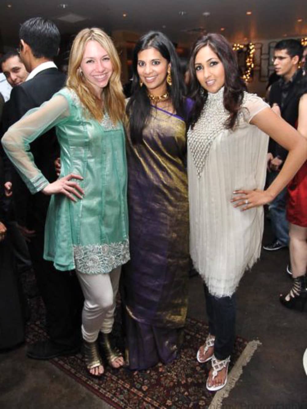 Lauren Pray, from left, wearing Prashe, Elizabeth Abraham and Sophia Arabani,also in Prashe, at the "Saris & Samosas" night at SoVino.Photo by Joe Melchor