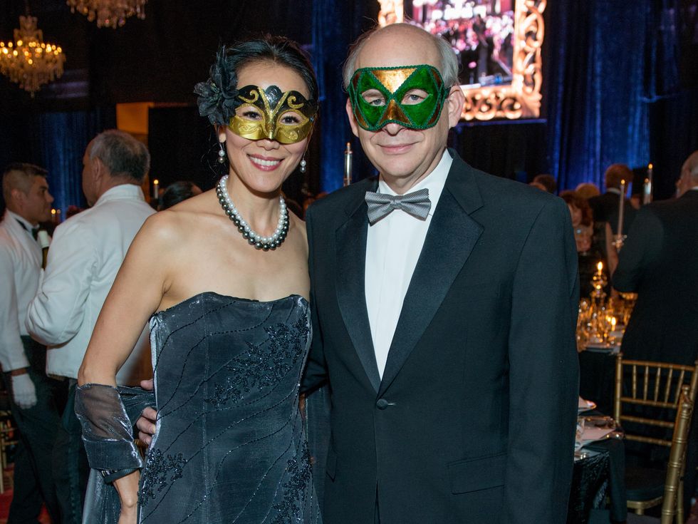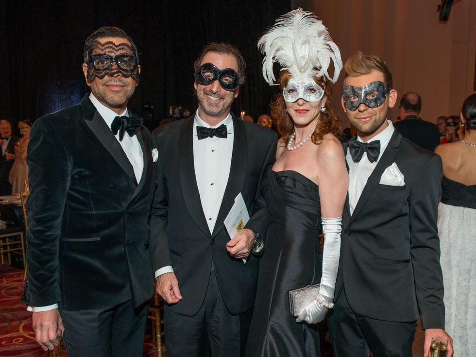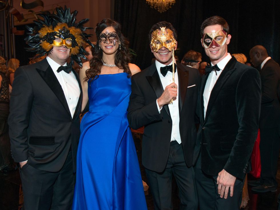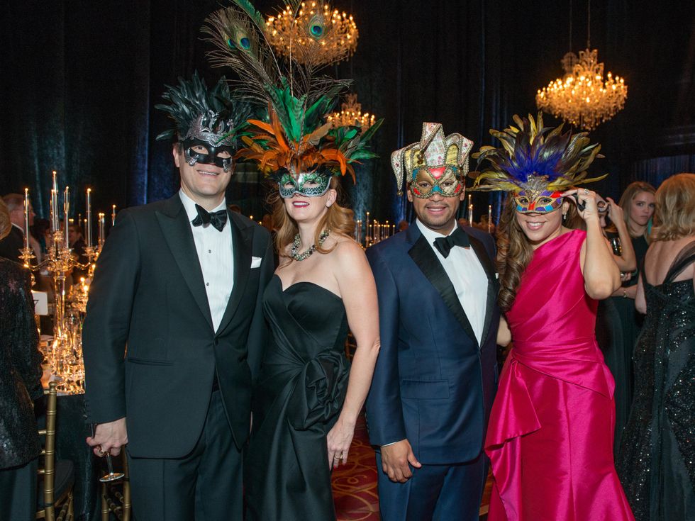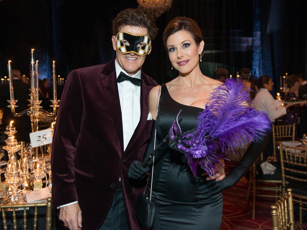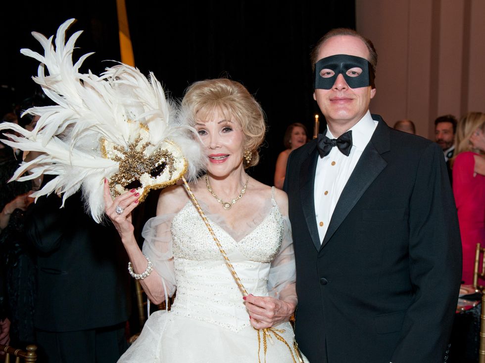 The dramatic ballroom decor was the perfect backdrop for the plethora of inspired masks that guests wore including Lucinda and Javier Loya, whose masks were made by Hermes in New York; honoree Bobby Tudor's by Kate McNee of New Orleans; Phoebe Tudor's red lace mask made to match her red Carolina Herrera gown by Cathy Rascoe; and Celina Hellmund's mask by Judith Leiber, a match for her masked minaudiere, also by Leiber.