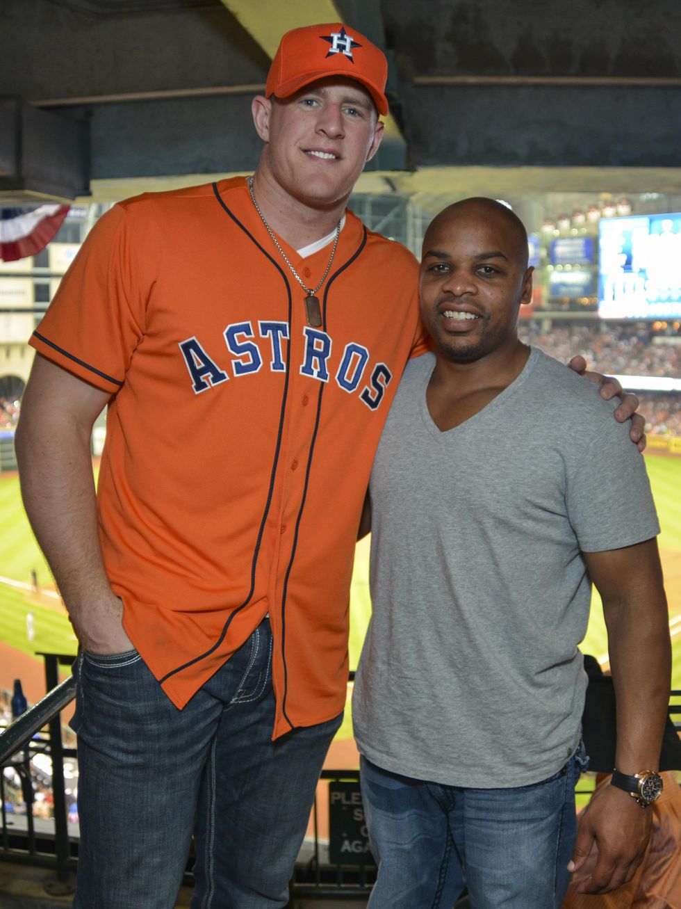 Once J.J. Watt had tossed out the ceremonial first pitch in Minute Maid Park and after Lyle Lovett had sung the national anthem, the two stars of two very different worlds made their way to the upper level of the baseball stadium to join Astros owner Jim Crane and wife Franci in the family suite for the MLB season opener.
