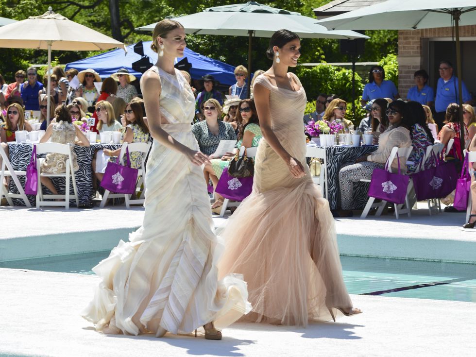 Gowns from Tootsies a splashing success on the runway built over the swimming pool.