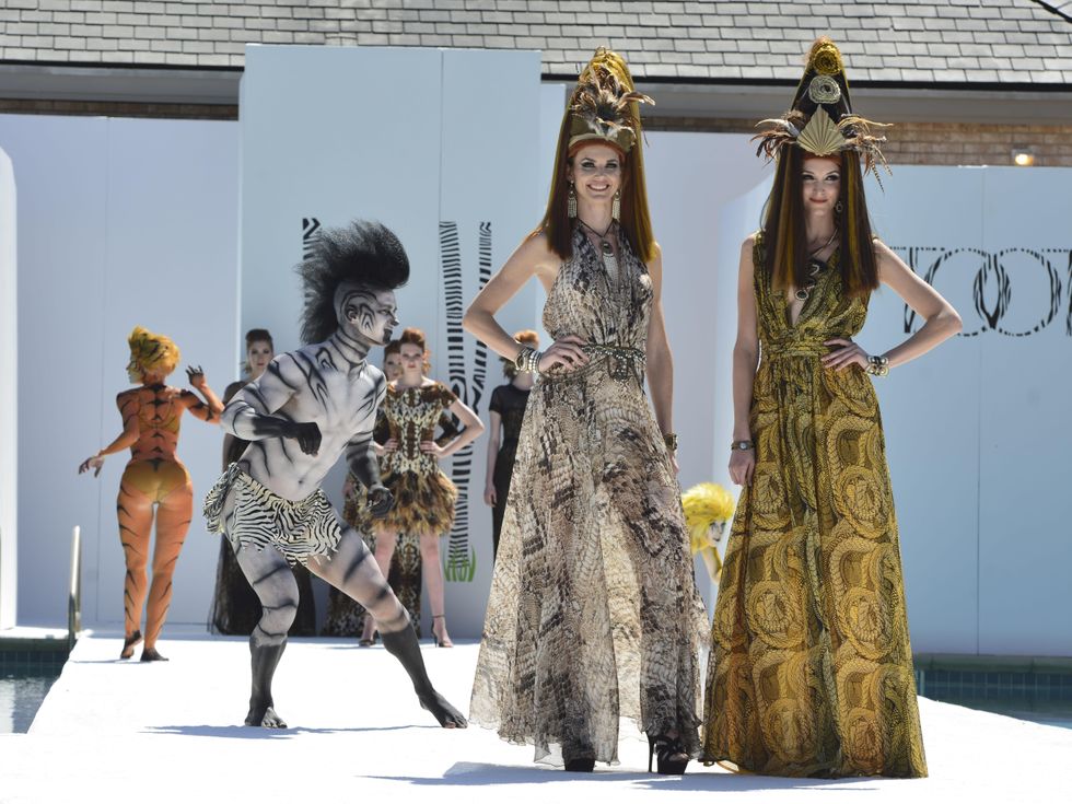 Thus, the jungle "animals" that alluringly gyrated a la Lion King characters down the catwalk which was built over the country club swimming pool. The dancers and Phat Strad, an all-girl rock electric string quartet, were flown in from Las Vegas for the back-to-back luncheons. Thanking JoLynn and Gregg Falgout for the talent-filled twist on the traditional fashion show was Tootsies impresario Mickey Rosmarin, whose venerable emporium has provided runway looks for all three decades.