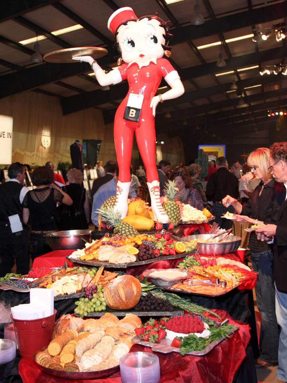 This wild and woolly party night is basically the same each year — pig races, casino gambling, Big Board auction action, the live auction and a bounty of irresistible eats. The theme is what sets one apart from the next. This year's theme, "Get Your Kicks on Route 66," took an updated turn away from the more traditional Wild West ambience. That would explain the giant Betty Boop statue greeting guests and the costumed Betty Boop and '50s-style pinup girls trolling the party scene.