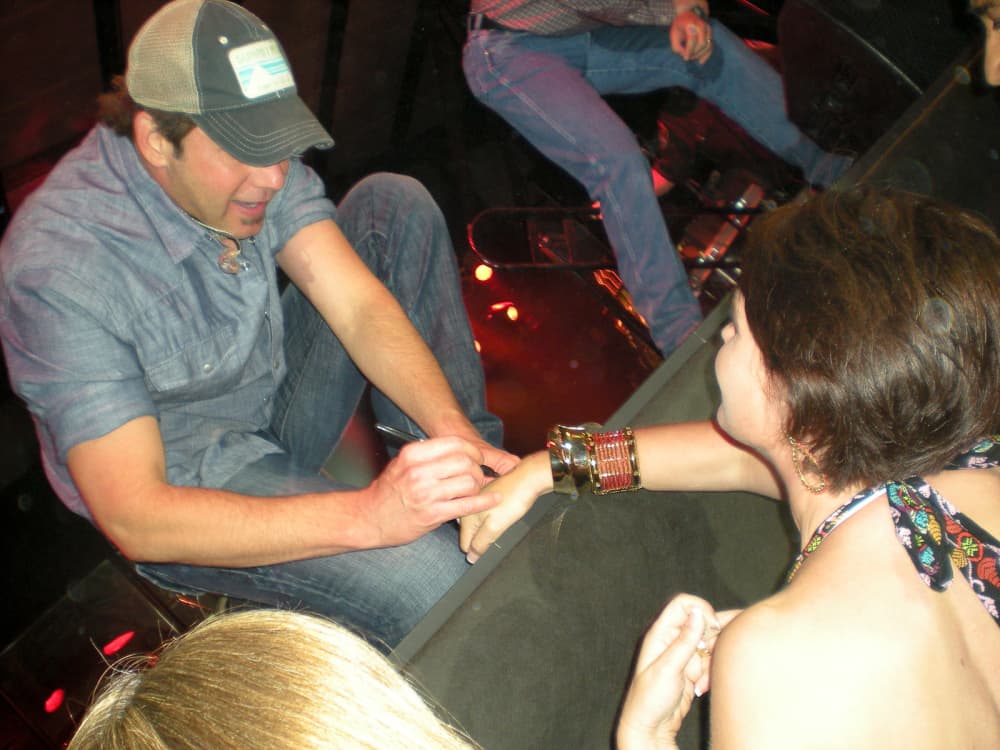 He left the stage to mingle on the dance floor, pose for photos and sign autographs. The ladies offered up their boots and even body parts for the "RA" signature.