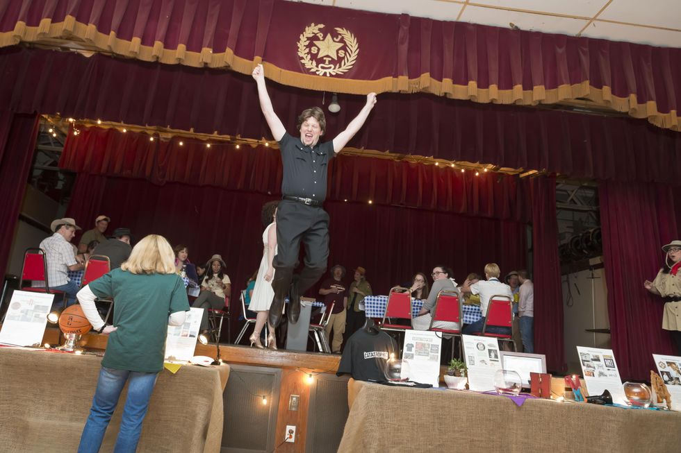 Is there any Catastrophic Theatre party in which the company's rascals don't abide by the theme with Scout's honor? And talking about those scouts, such was the popular attire of the wacky Camp Catastrophic soiree at the SPJST Lodge #88.