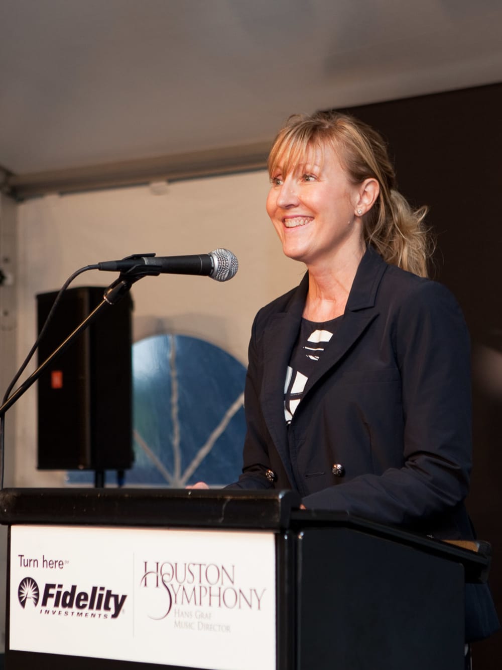 Welcoming guests were Fidelity's senior veep and Texas market manager Jeanie Reckart and Houston Symphony principal pops conductor Michael Krajewski. They encouraged guests to sign the Fidelity signature wall. For every John Hancock posted, Fidelity donated $1 to its program of buying new instruments for local schools.