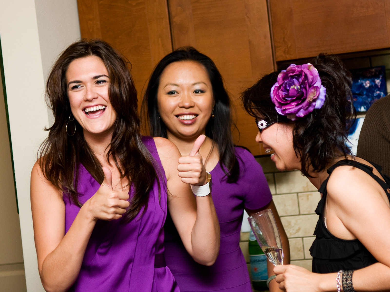 Cara Morales, from left, Miya Shay and Hanh Tran party at the artist's holidayevent.
