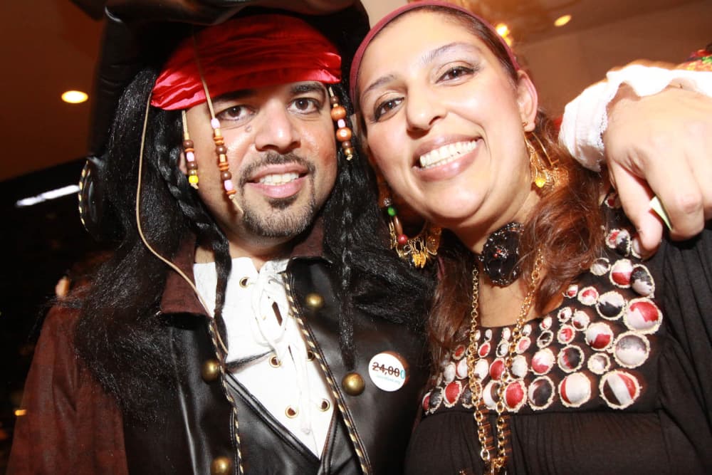 Pirates of the Caribbean lead Jack Sparrow, a personal favorite, seemed to be the costume of choice for a number of dashing caballeros including Pershant Mehta, accompanied by wife Nidhika who forcefully denied that she was either a witch or a gypsy.