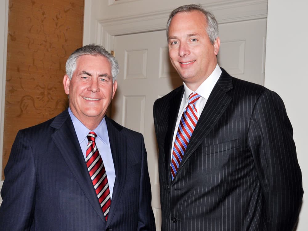 Rex Tillerson, left, chairman and chief executive officer of ExxonMobil, andBobby Tudor, Alexis de Tocqueville Society co-chairTish Cowan