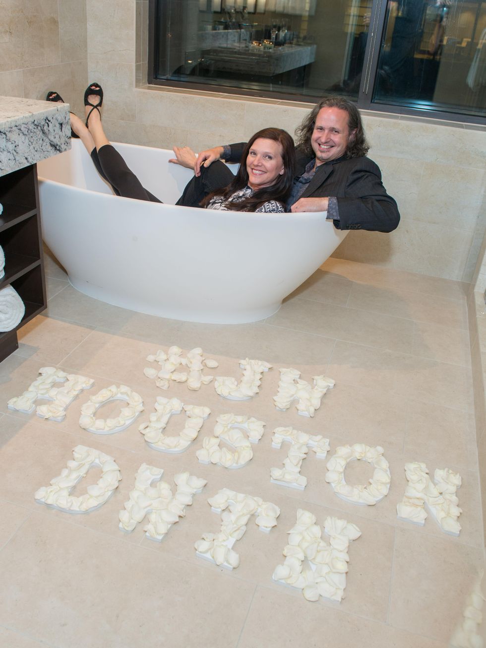 Party guests joined the animation, jumping into the suite's cylindrical bathtub for photos.
