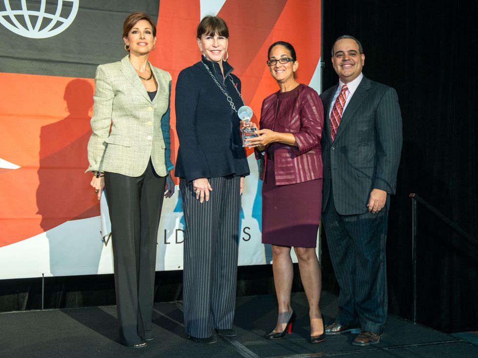 Joining in the program were AIDS Foundation CEO Kelly Young, luncheon honorary chair Travis Torrence and Joni Baird of Chevron, sponsor of the luncheon.