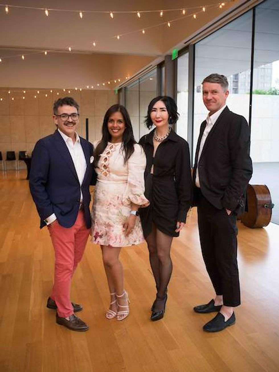 The event chairs Kusum Patel, Liana Schwaitzberg, and Aerin Smith organized an amicable soirée that highlighted the relationship between the organizations. The run-of-show included a chamber music performance featuring an unusual double bass quartet composed of Houston Symphony instrumentalists Donald Howey, Timothy Dilenschneider, Robin Kesselman, and Andrew Pedersen, followed by a private walkthrough of Xu Bing: Word Alchemy. The exhibition’s woodcuts, prints, videos, drawings, and installations act as a 50-year retrospective of the Chinese-born artist’s imagination.
