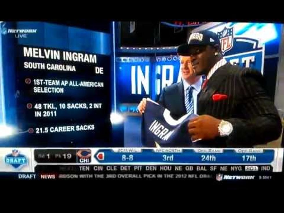 Did you see the commissioner's crazy, premeditated, secret handshake with San Diego Chargers draft pick Melvin Ingram? Or any of the other hugs Goodell pulled off? (The Ingram handshake ended in an embrace too, of course). The NFL commissioner is more touchy feely than Sofia Vergara in Modern Family at the NFL Draft.