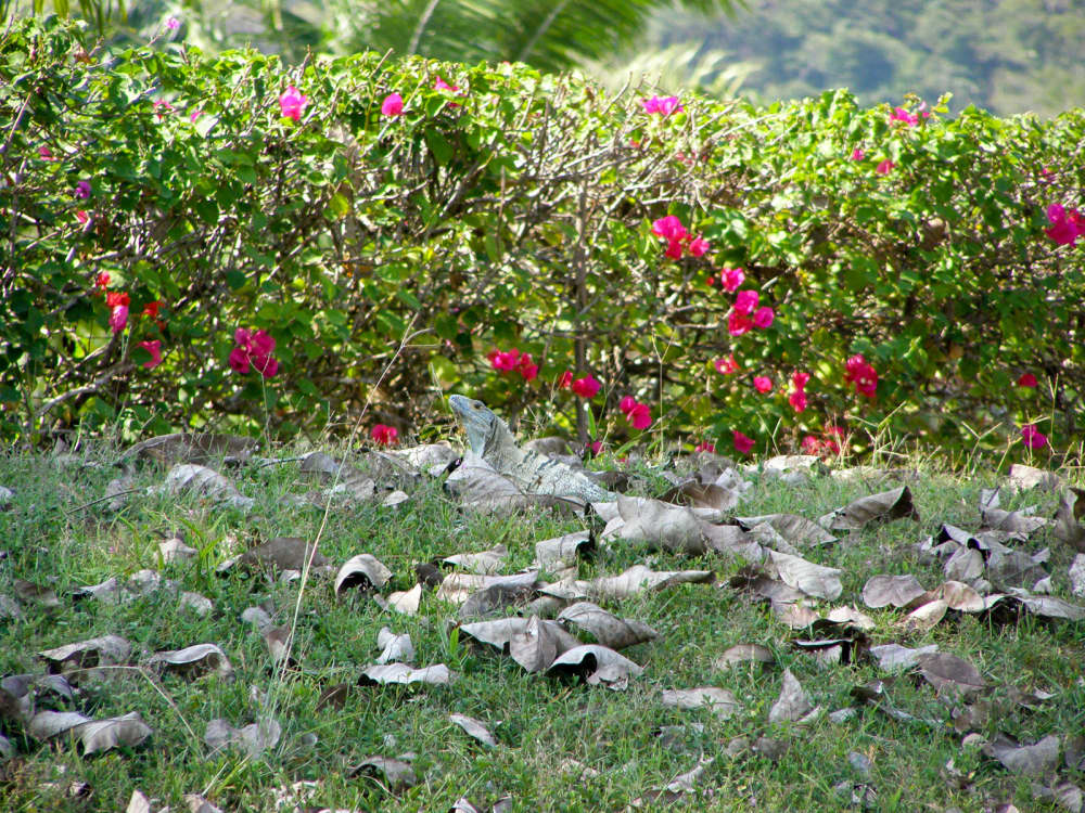 At the Marriot Los Suenos Ocean & Golf Resort in Playa Herradura, we took on the jungle-lined golf course (with white-faced monkeys in the trees, probably mocking our game). Ceramic iguana wannabes mark tee-offs, while the real things sun about the grounds. Several restaurants line the marina here – more great options for lunch or dinner.